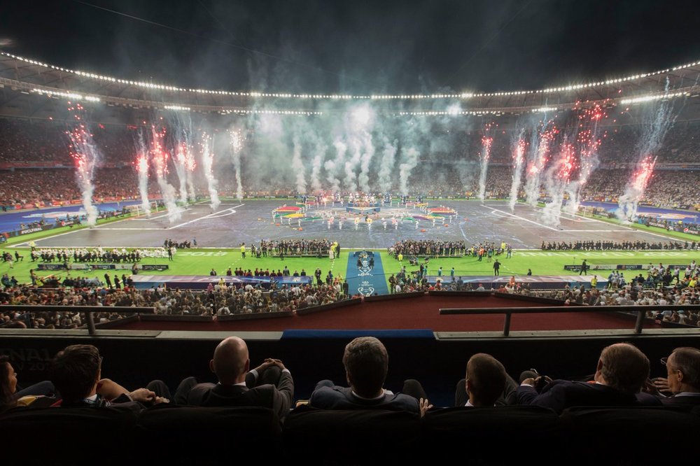 Сегодня, 26 мая, президент Украины Петр Порошенко наблюдает за финальным матчем "Ливерпуля" и "Реала" Лиги чемпионов УЕФА из VIP-ложи на НСК "Олимпийский" в Киеве. Вместе с ним находится король Испании Хуан Карлос І, президент УЕФА Александер Чеферин, президент Эстонии Керсти Кальюлайд и премьер Болгарии Бойко Борисов.