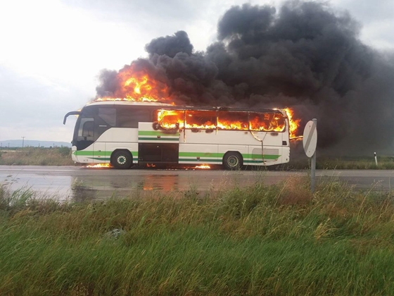 Сегодня, 26 мая, на севере Греции молния ударила в междугородний автобус, который направлялся из Александруполиса в Орестиаду, ударила молния. После этого транспорт сразу загорелся.