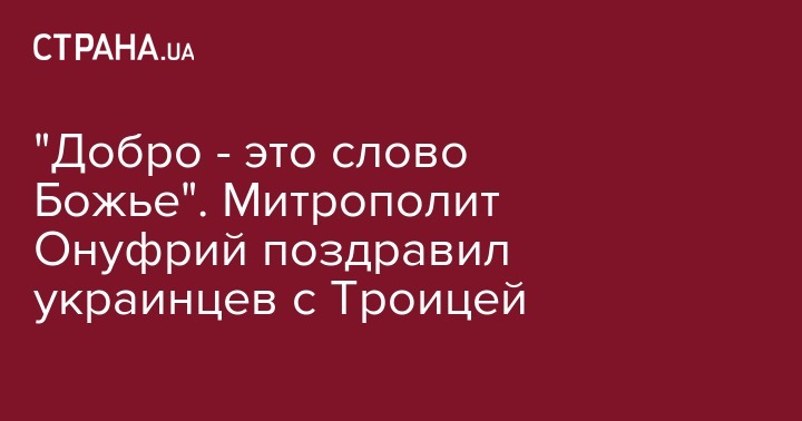"Добро - это слово Божье". Митрополит Онуфрий поздравил украинцев с Троицей
