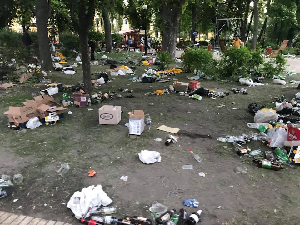 Ночь, 27 мая, выдалась горячей для коммунальных служб Киева. Им пришлось в срочном порядке убирать город от завалов мусора, которые оставили после в фан-зонах болельщики Реала и Ливерпуля, прилетевшие на финал Лиги чемпионов.
