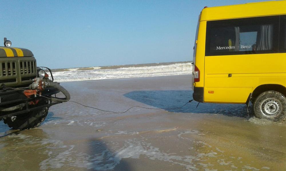 "26 мая спасатели получили сообщение, что в районе базы отдыха "Золотой берег" застрял автобус и нужна помощь. Прибыв на место, спасатели установили, что вследствие сильного ветра и подъема воды возникло затопление, и, кроме автобуса, требовали помощи еще больше десятка автомобилей", - сказано в сообщении.