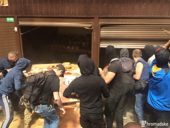 Националисты громят Дарынок. Фото - Громадське