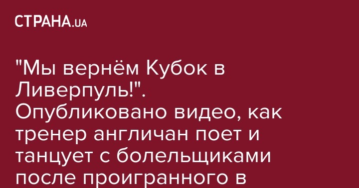 "Мы вернём Кубок в Ливерпуль!". Опубликовано видео, как тренер англичан поет и танцует с болельщиками после проигранного в Киеве финала