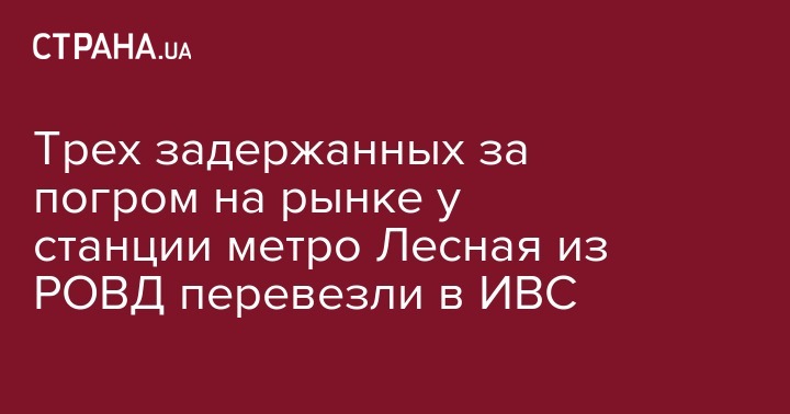 После погрома на товарном рынке в Киеве у станции метро Лесная трех задержанных националистов из "С14" вывезли в ИВС из Деснянского районного управления ГУМВД Украины в Киеве. Об этом говорится в сообщении С14 в Telegram-канале.