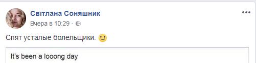 "Спят усталые болельщики", – сообщает Світлана Соняшник.