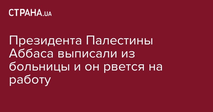 Президент Палестины Махмуд Аббаса выписалcя из больницы, и заявил, что с ним все в порядке и что он планирует сразу же приступить к работе. Напомним, что Аббаса госпитализировали три раза за неделю.