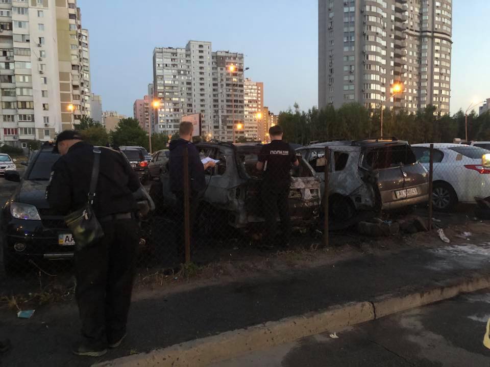 По словам очевидцев, к стоянке в Дарницком районе столицы по адресу Григоренко 36, где был припаркован автомобиль Стаса, подъехал мотороллер. Водитель облил бензином машину, поджег ее, и скрылся.