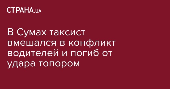 В центре города Сумы во время конфликта между двумя водителями один из них зарубил топором таксиста, который вступился за другого участника конфликта, и скрылся с места преступления.