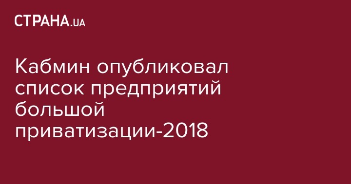 Правительство Украины опубликовано распоряжение об объектах большой приватизации государственной собственности в 2018 году.