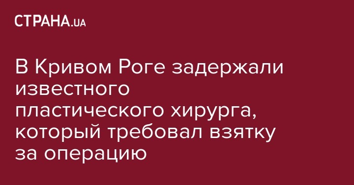 В Кривом Роге задержали известного пластического хирурга, который требовал взятку за операцию