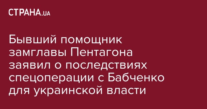 Бывший помощник замглавы Пентагона заявил о последствиях спецоперации с Бабченко для украинской власти