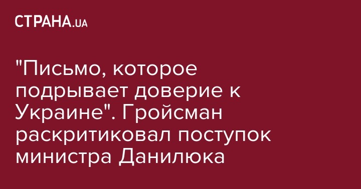 "Но, тем не менее, это было письмо уже не про Данилюка, который написал в Еврокомиссию, это было письмо, которое подрывает доверие к самой Украине, что является абсолютно необоснованным", - добавил Гройсман.