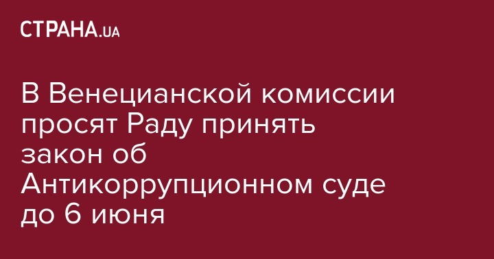 Глава Европейской комиссии за демократию через право (Венецианской комиссии) Джанни Букиккио надеется, что Верховная Рада примет закон о создании Антикоррупционного суда до 6 июня.