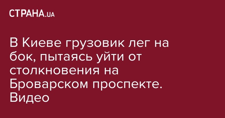 В Киеве грузовик лег на бок, пытаясь уйти от столкновения на Броварском проспекте. Видео