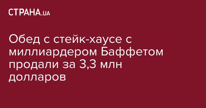 На благотворительном аукционе за 3,3 млн долларов продали право пообедать с известным филантропом и миллиардером 87-летним Уорреном Баффетом.