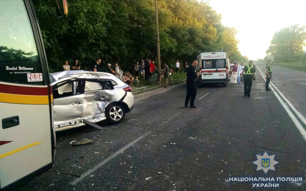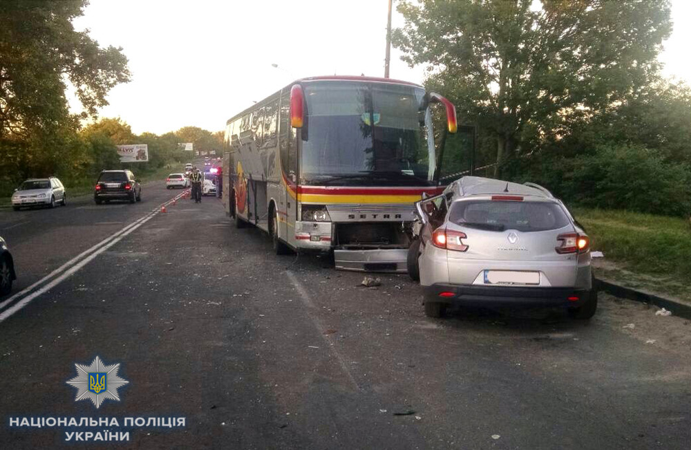41-летний житель Ровно, управляя автомобилем "Renault Megane", совершая маневр разворота через двойную сплошную линию разметки, выехал на полосу встречного движения, где столкнулся с автобусом "Setra" сообщением "Киев-Львов".