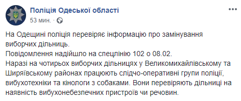 Под Одессой полиция ищет взрывчатку на четырех избирательных участках
