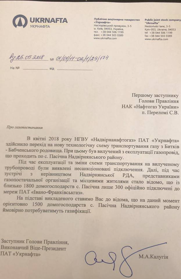 В селе Пасична, Надвирнянского района, Ивано-Франковской области 1833 дворов. Официально газифицированными и присоединенными к газораспределительным сетям из них являются только 738. Все остальные еще с 90-х годов брали газ в промышленном газопроводе, который принадлежит госкомпании "Укрнафта", входящей в группу "Нафтогаз". По этой трубе шел неодорированный газ прямо с Бабчинского месторождения. Вся эта история с незаконным потреблением газа стала известна только сейчас, когда в мае газопровод вывели из эксплуатации, и около 1000 семей остались вовсе без газа и обратились к органам власти с просьбой решить проблему газоснабжения их домохозяйств.