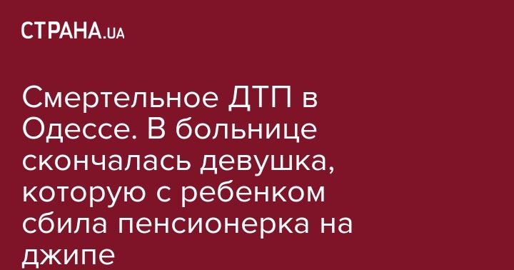 Смертельное ДТП в Одессе. В больнице скончалась девушка, которую с ребенком сбила пенсионерка на джипе