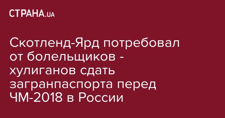Скотленд-Ярд объявил о началае необычной операции перед началом чемпионата мира, который стартует в России 14 июня. Полиция Лондона, потребовала от всех проживающих в городе болельщиков, занесенных в черные списки хулиганов и дебоширов, сдать свои паспорта.