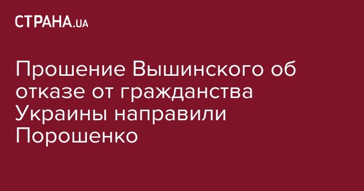 Прошение главного редактора РИА Новости Украина Кирилла Вышинского об отказе от гражданства Украины направлено президенту страны Петру Порошенко. Такое заявление сделал адвокат арестованного журналиста Андрей Доманский. Об этом сообщает РИА Новости.