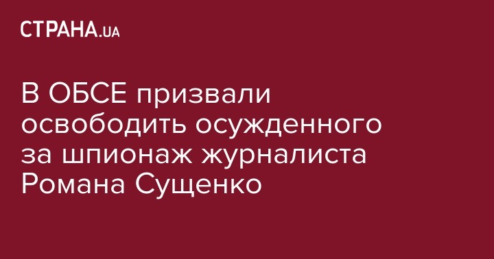 Представитель ОБСЕ по свободе СМИ Арлем Дезир выразил сожаление в связи с обвинительным приговором гражданину Украины Роману Сущенко, осужденному в России за шпионаж. Дезир призвал российскую власть освободить его.