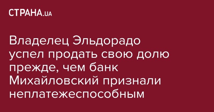 Владелец Эльдорадо успел продать свою долю прежде, чем банк Михайловский признали неплатежеспособным