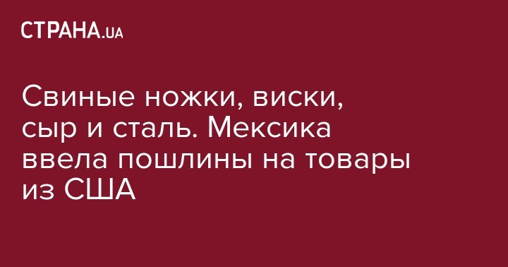 До этого Reuters со ссылкой на два источника в отрасли, знакомых с планом, сообщало, что Мексика хочет ввести ввозные пошлины в размере 20% на свинину. Как заявил министр экономики страны Ильдефонсо Гуахардо, на ввоз свиных лопаток и свиных ножек из США приходится около 90% ежегодного импорта. Представители отрасли сообщили, что новые пошлины могут вступить в силу в среду, 6 июня.