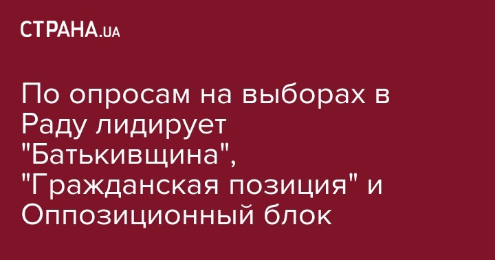 12,6% респондентов, опрошенных фондом "Демократические инициативы" и Украинским центром экономических и политических исследований имени Александра Разумкова, на выборах в Верховную Раду готовы проголосовать за политическую партию "Всеукраинское объединение "Батьківщина", 10,7% - за "Гражданскую позицию", 8,5% - за "Оппозиционный блок". Такие данные опроса приводятся на сайте фонда.