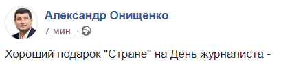А вот нардеп Александр Онищенко считает, что это хороший подарок "Стране" на День журналиста.