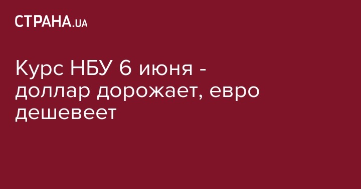 В среду, 6 июня, Нацбанк установил официальный курс гривны по отношению к иностранным валютам. По сравнению с предыдущим рабочим днем, доллар немного подорожал, а евро стал дешевле.
