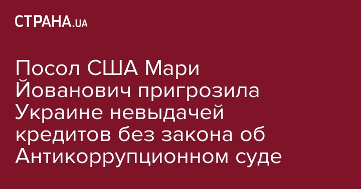 Посол США Мари Йованович пригрозила Украине невыдачей кредитов без закона об Антикоррупционном суде