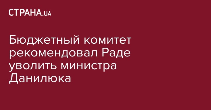 Во время заседания сегодня, 6 июня, комитет Верховной Рады по вопросам бюджета рекомендовал парламенту поддержать проект постановления Кабмина об увольнении министра финансов Александра Данилюка. Об этом "Украинским новостям" сообщил заместитель председателя комитета Сергей Мельник.