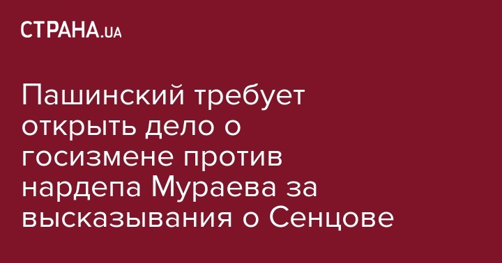 Глава комитета Верховной Рады Украины по вопросам нацбезопасности и обороны Сергей Пашинский (фракция "Народный фронт") просит открыть дело против нардепа Евгения Мураева за его высказывания о режиссере Олеге Сенцове.
