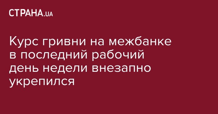Курс гривни на межбанке в последний рабочий день недели внезапно укрепился