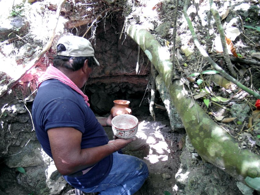 Никто не контролирует раскопки. Коммуникаций ноль, только через джунгли, или вертолетом. Хуечерос роют курганы, конкуренция жесткая. Артефакты продают за копейки.