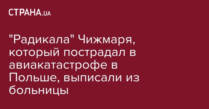 В воскресенье, 10 июня, народного депутата от Радикальной партии Юрия Чижмаря, который был на борту легкомоторного самолета, потерпевшего крушение в Польше, выписали из больницы.