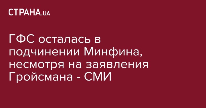 "ГФС останется в подчинении Минфина", - сказал источник в Кабинете Министров.