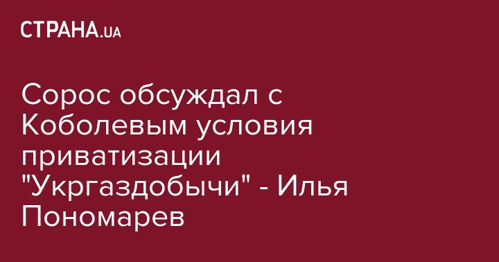 Сорос обсуждал с Коболевым условия приватизации "Укргаздобычи" - Илья Пономарев