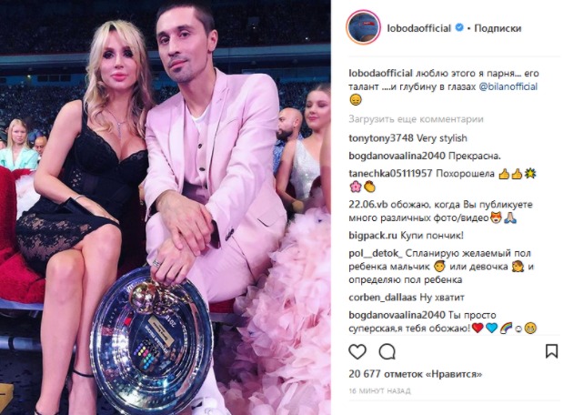 "Люблю этого я парня... его талант ....и глубину в глазах", - написала Лобода под совместным фото с певцом.