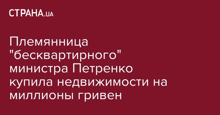 Племянница "бесквартирного" министра Петренко купила недвижимости на миллионы гривен