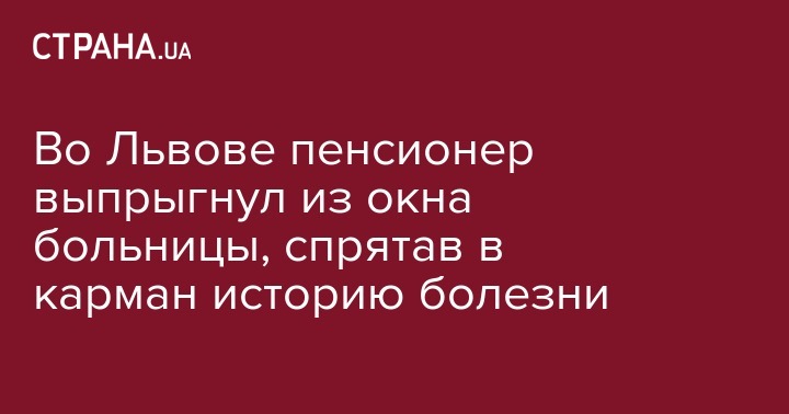 Во Львове пенсионер выпрыгнул из окна больницы, спрятав в карман историю болезни