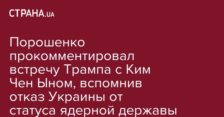 Порошенко прокомментировал встречу Трампа с Ким Чен Ыном, вспомнив отказ Украины от статуса ядерной державы