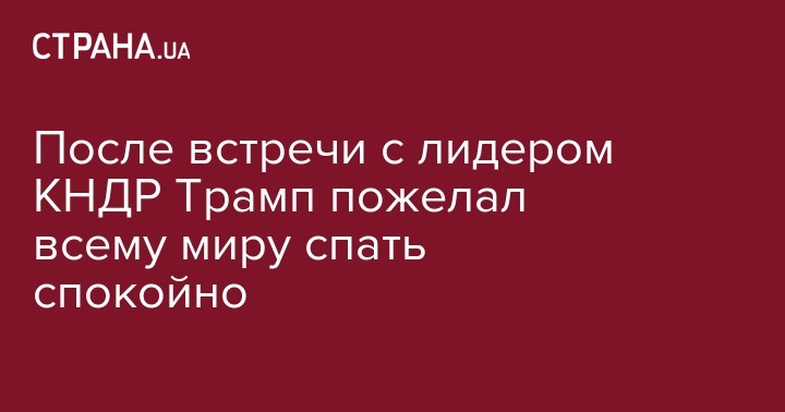 Президент США Дональд Трамп призвал народ спокойно спать по ночам. Об этом он написал в своем микроблоге в Тwitter после завершения исторической встречи с лидером КНДР Кимом Чен Ыном.
