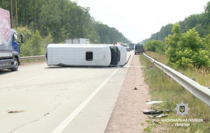 Сегодня, 13 июня, в Житомирской области около села Каменка перевернулся автомобиль "Mercedes-Benz Sprinter", водитель и трое пассажирок получили травмы.