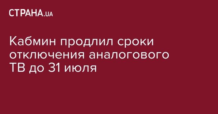 Кабинет министров еще на два месяца продлил сроки отключения аналогового вещания. Ранее предполагалось, что вещание отключат 1 июля, передает РБК-Украина.