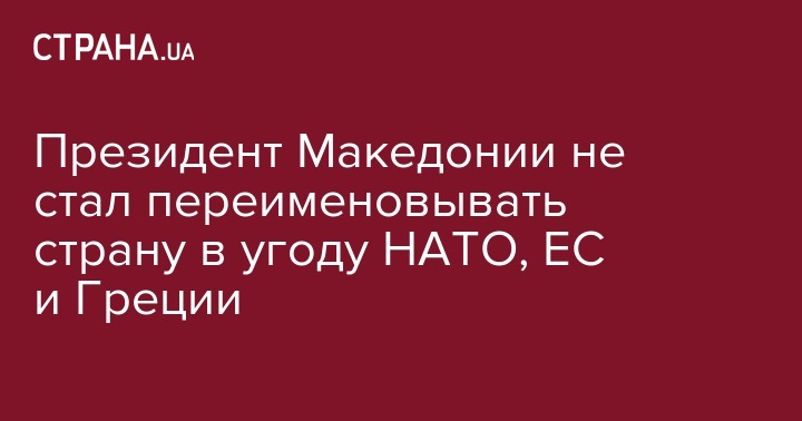 Президент Македонии не стал переименовывать страну в угоду НАТО, ЕС и Греции