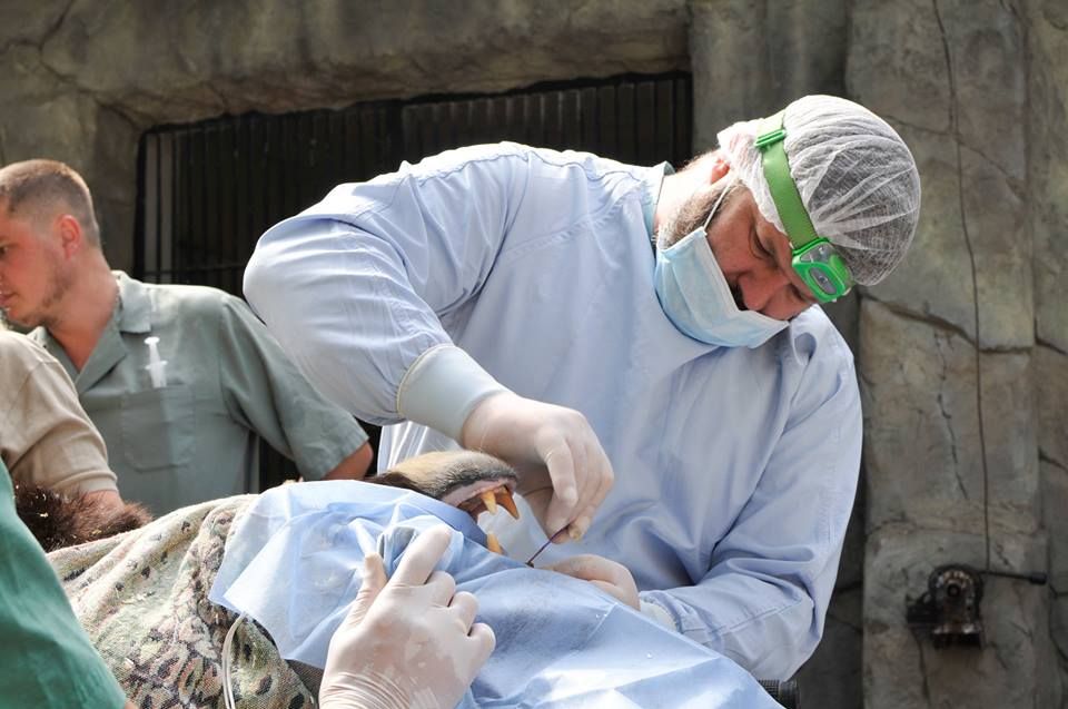 Медведям в зоопарке Киева убрали зубной камень, поставили пломбу и постригли когти