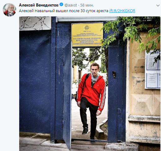 В четверг, 14 июня, российский оппозиционер Алексей Навальный вышел на свободу после ареста на 30 суток из-за акции "Он нам не царь".