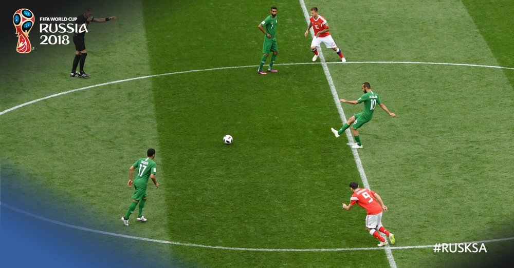 18.13 произнести фамилию голкипера сборной Саудовской Аравии непросто - Аль-Муаиуф, если ничего не перепутал. Потому будет просто аль-голкипер гостей. Ему еще не раз сегодня быть в центре внимания.